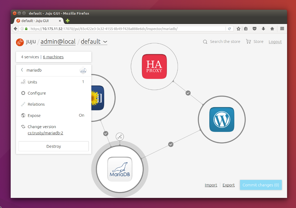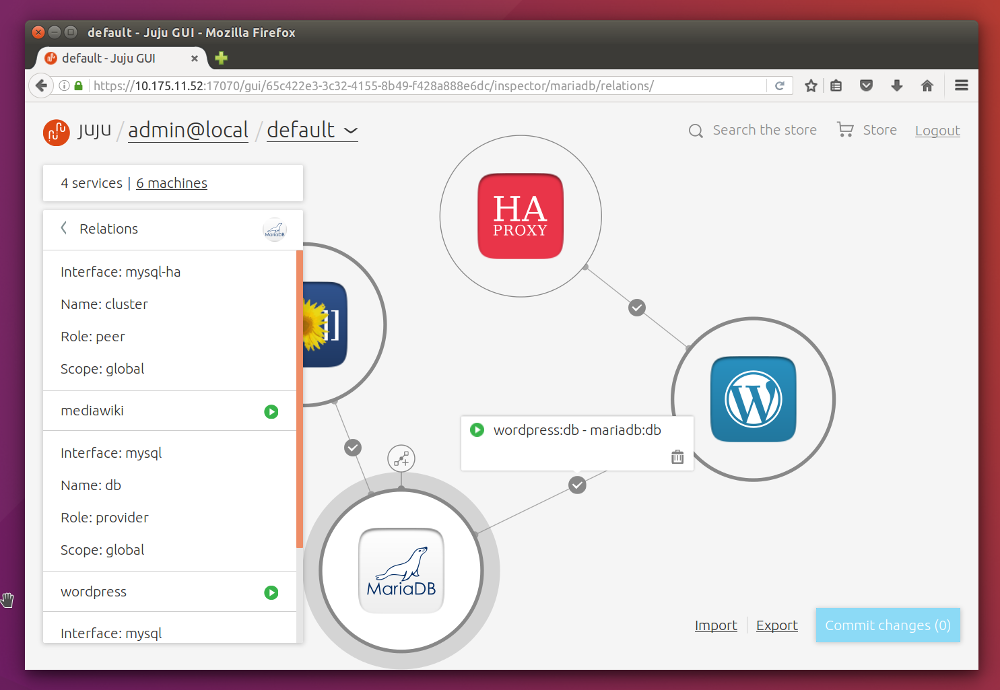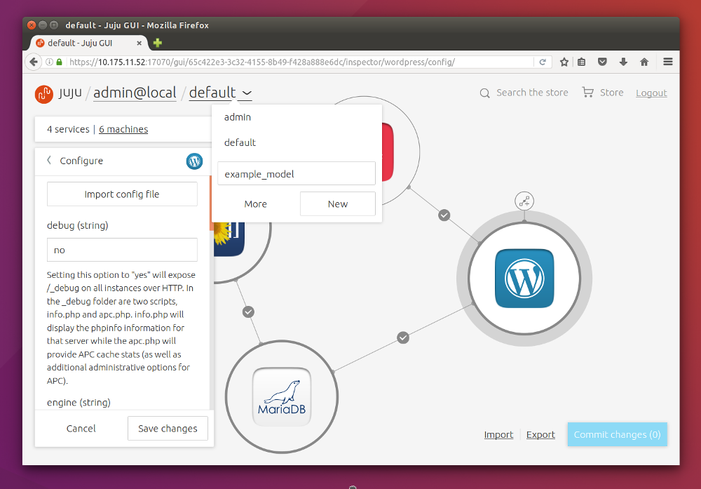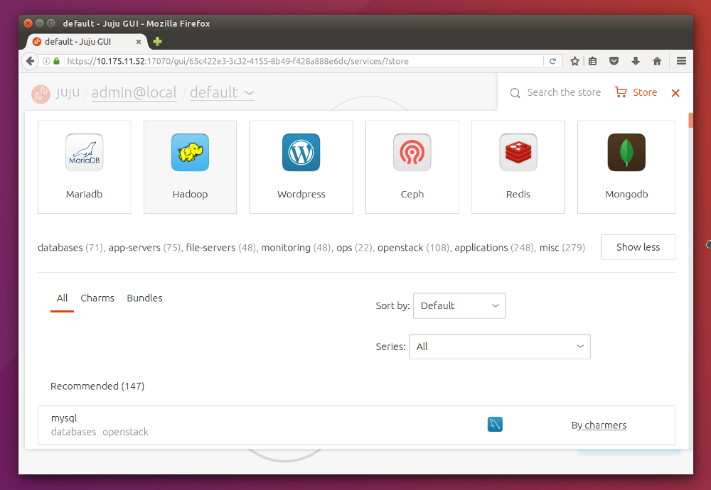 Another use for the GUI is building and managing a model in an intuitive and graphical interface. The GUI gives you access to all of the charms in the Charm Store, allowing you to deploy hundreds of different applications to your environment, or even to a sandbox environment, which you can then export to use later.